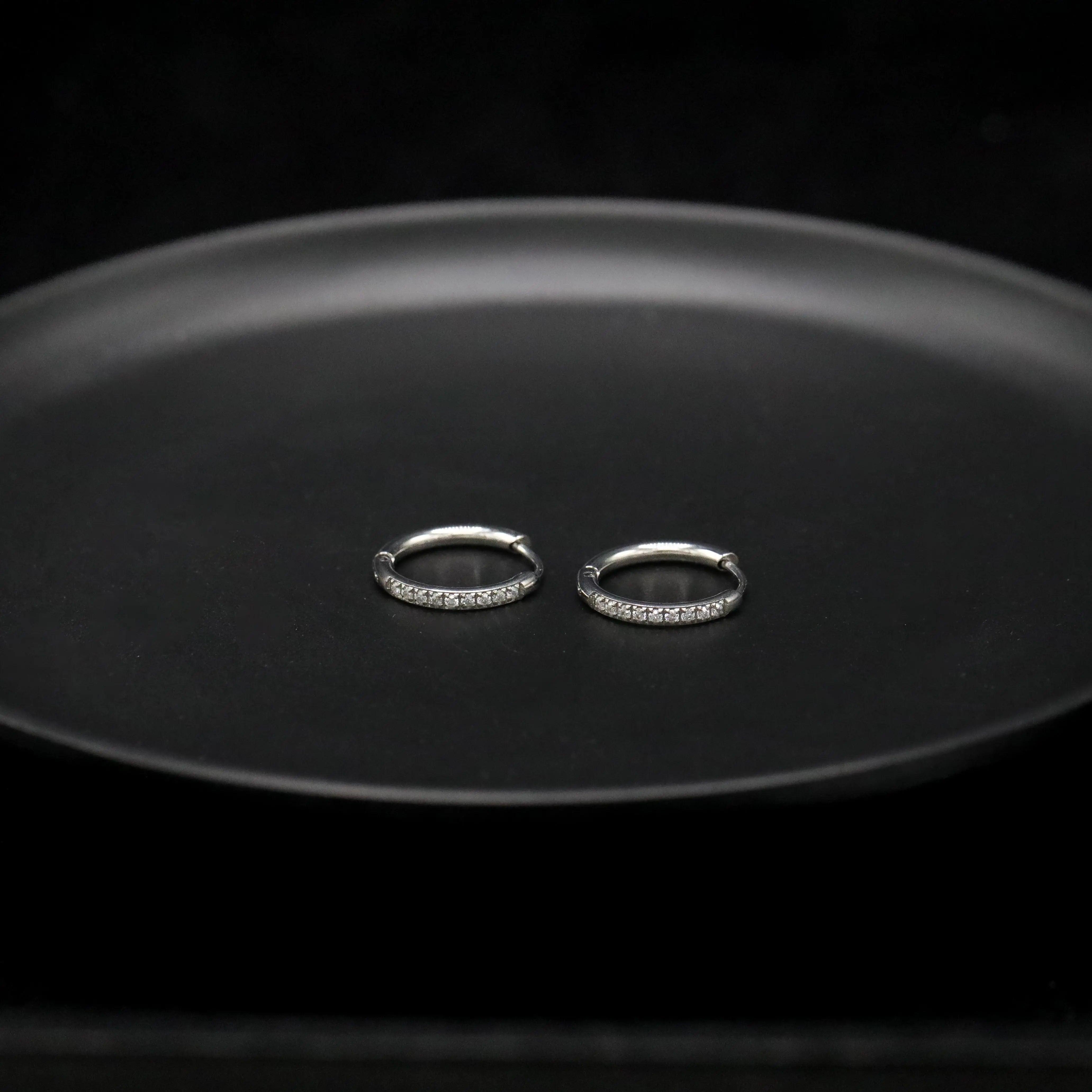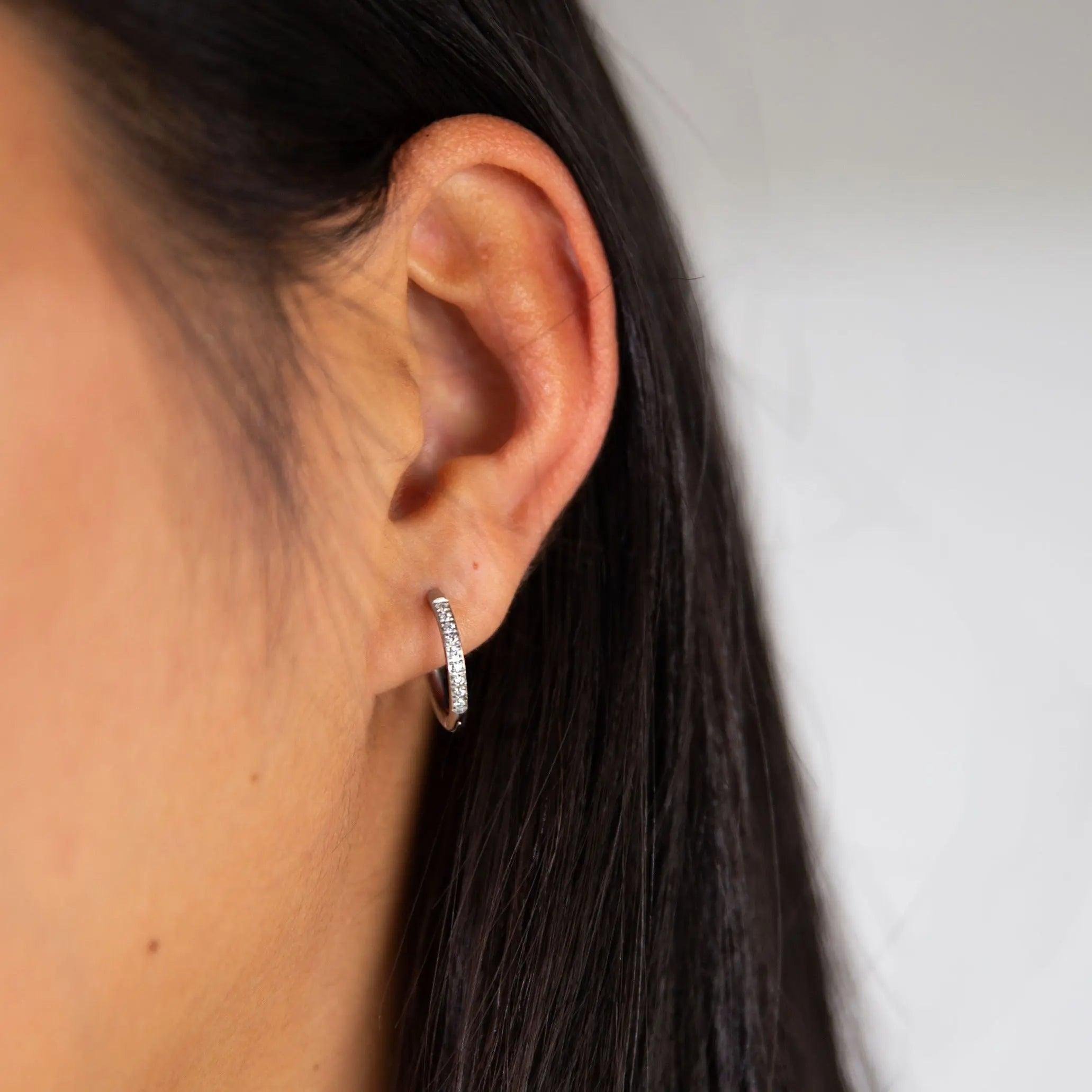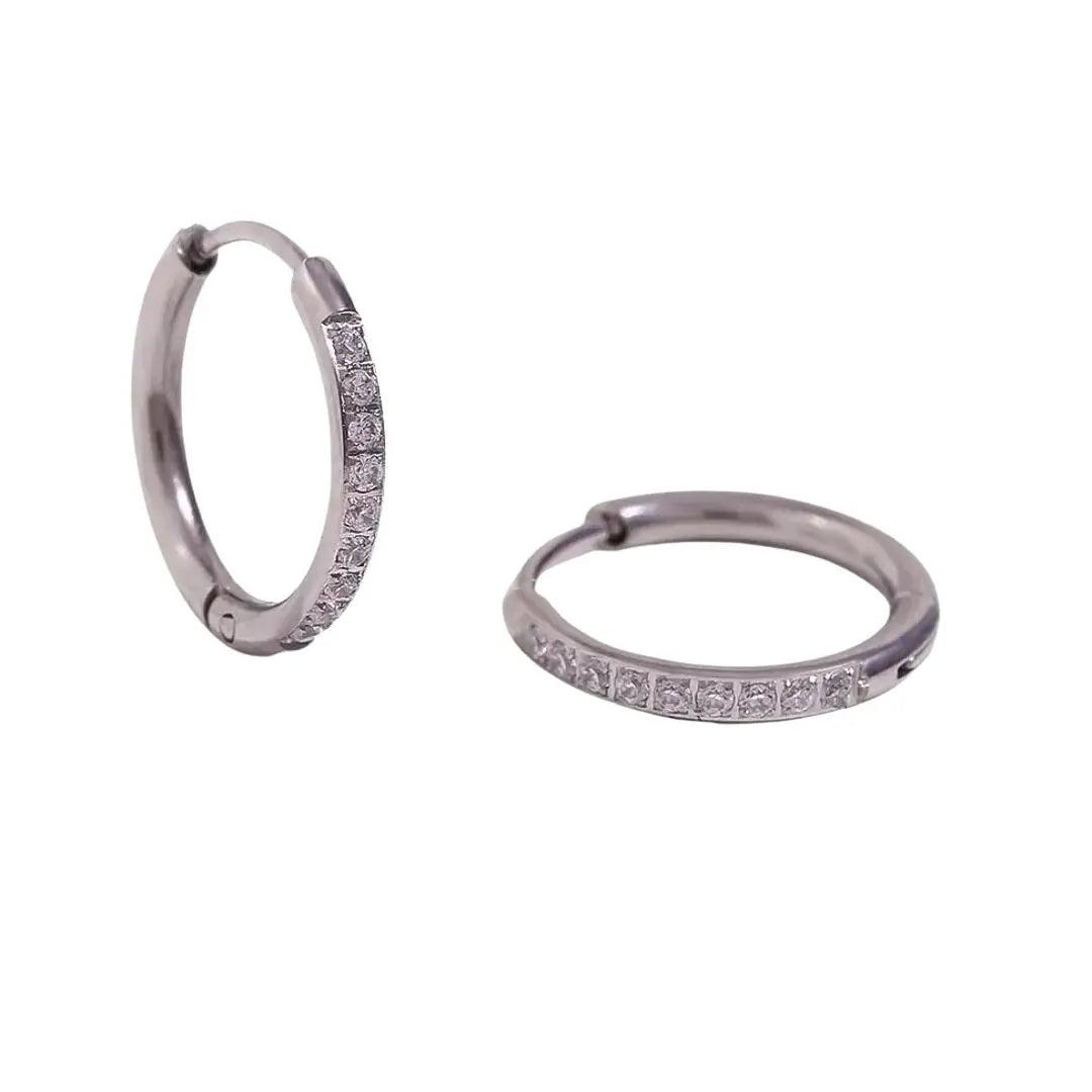 Thin Crystal Hoop Earrings - Silver