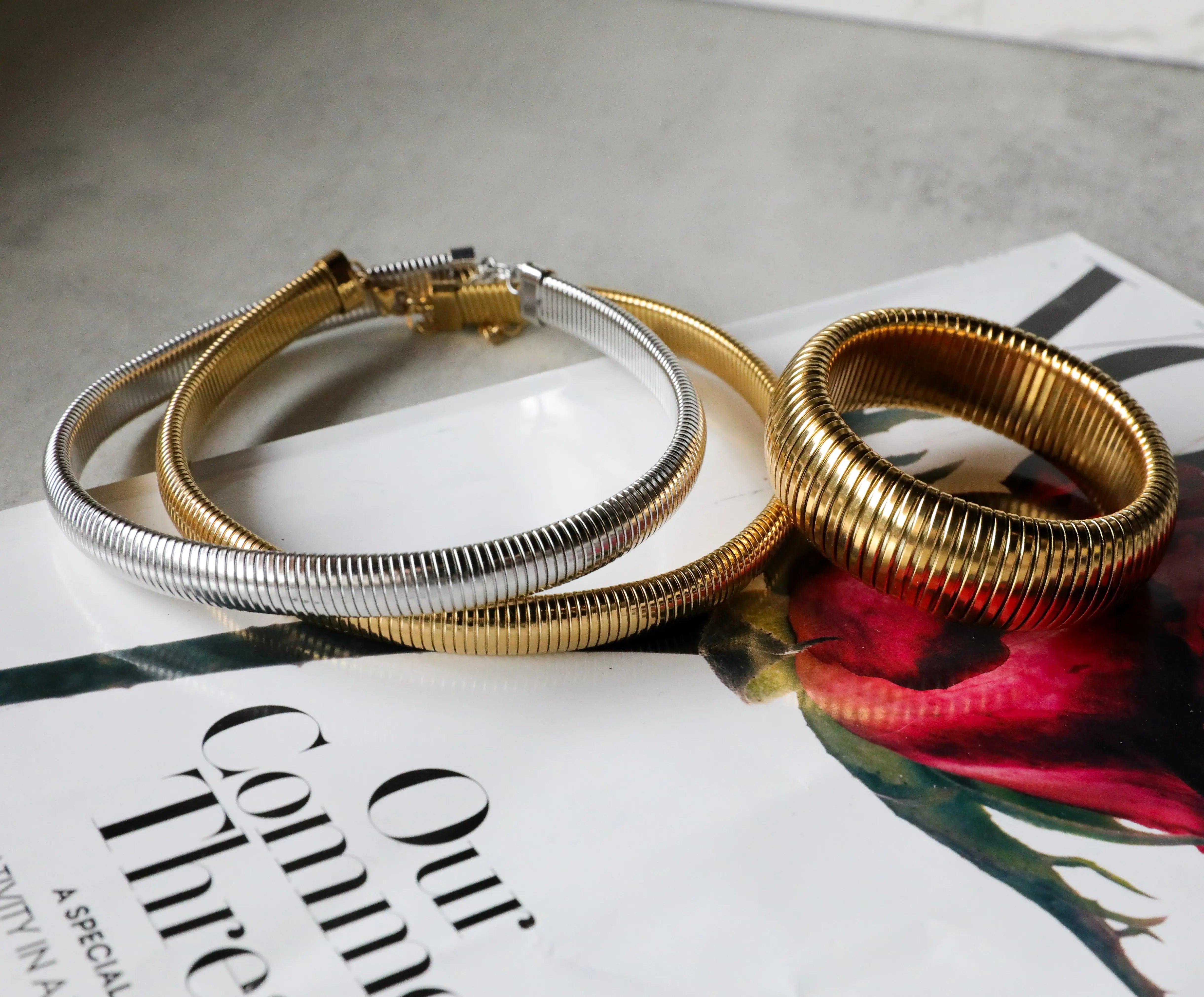 Coiled snake necklace designed to wear as a choker style necklace