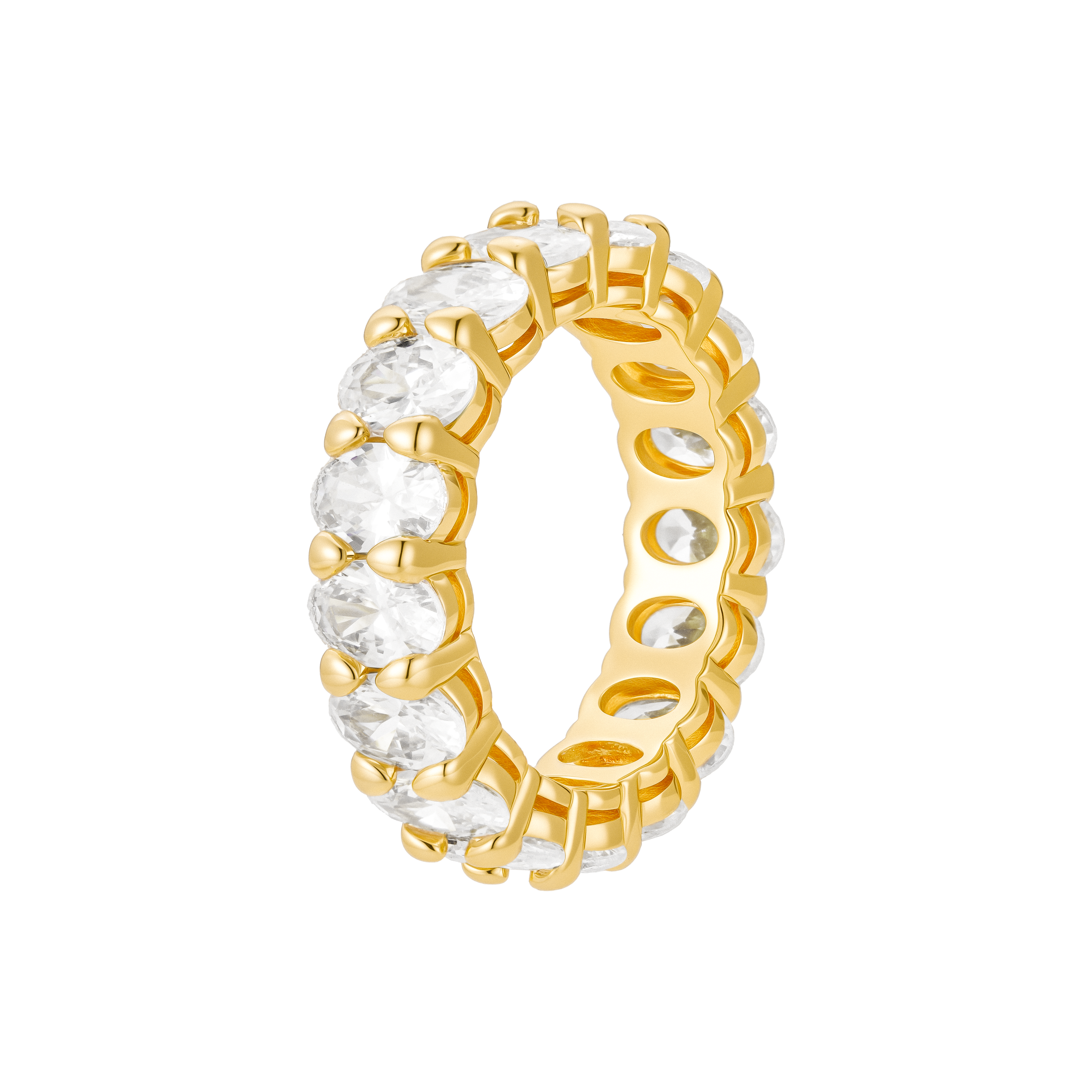 Bold sparkle, no apologies. This eternity-style band features oversized, diamond-like stones set in a rich gold finish for nonstop shine from every angle. Designed to catch the light (and the compliments), it’s the kind of piece that looks luxe worn solo and stacks flawlessly with your everyday favorites.