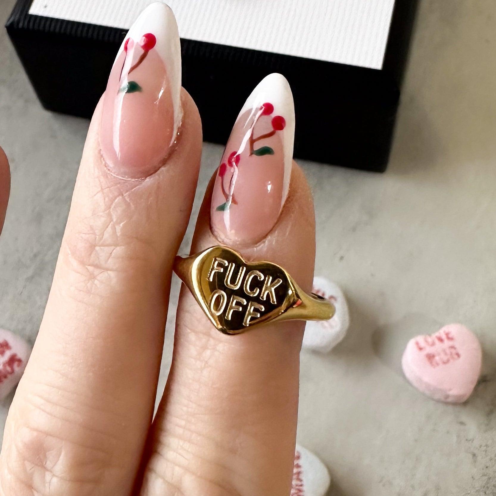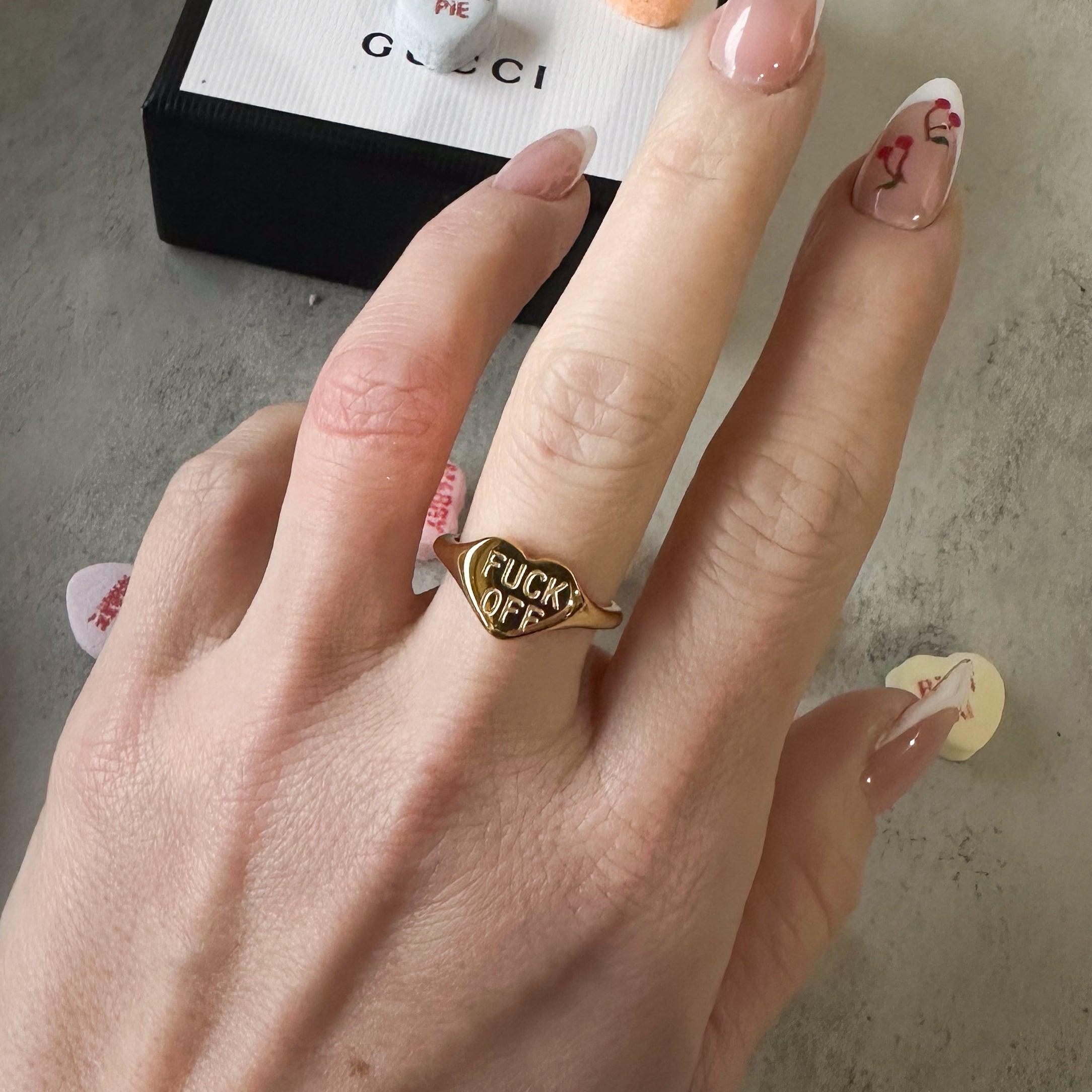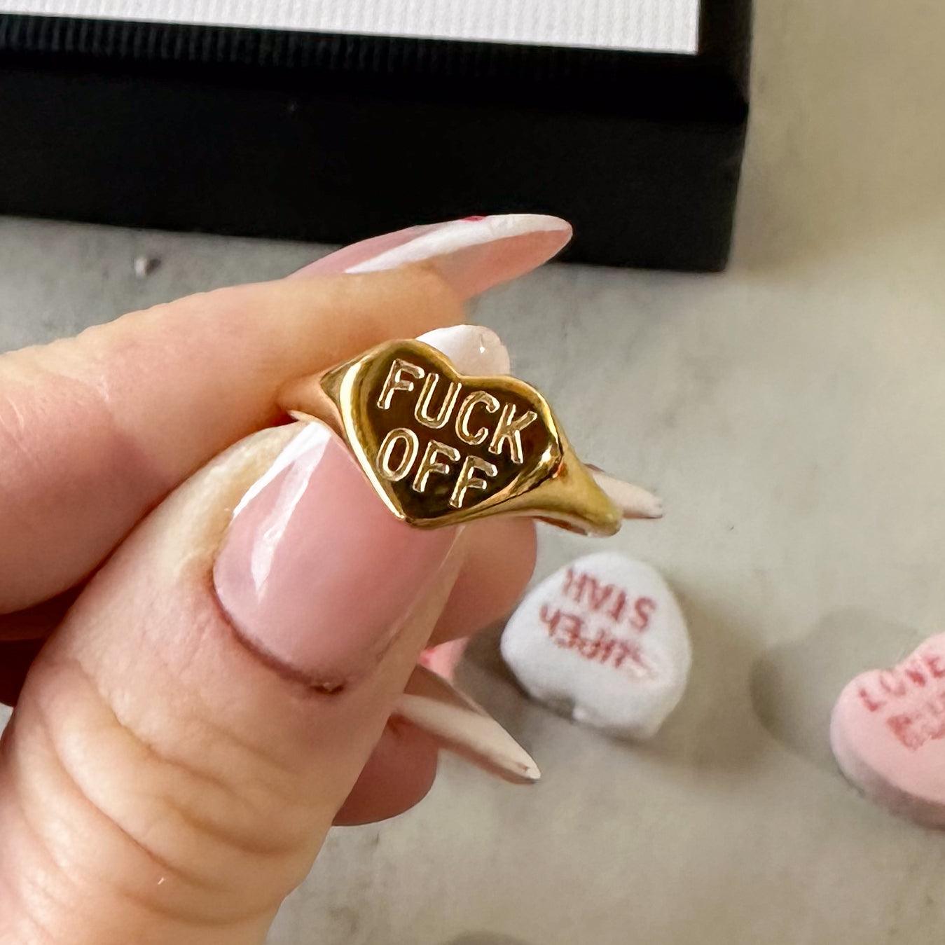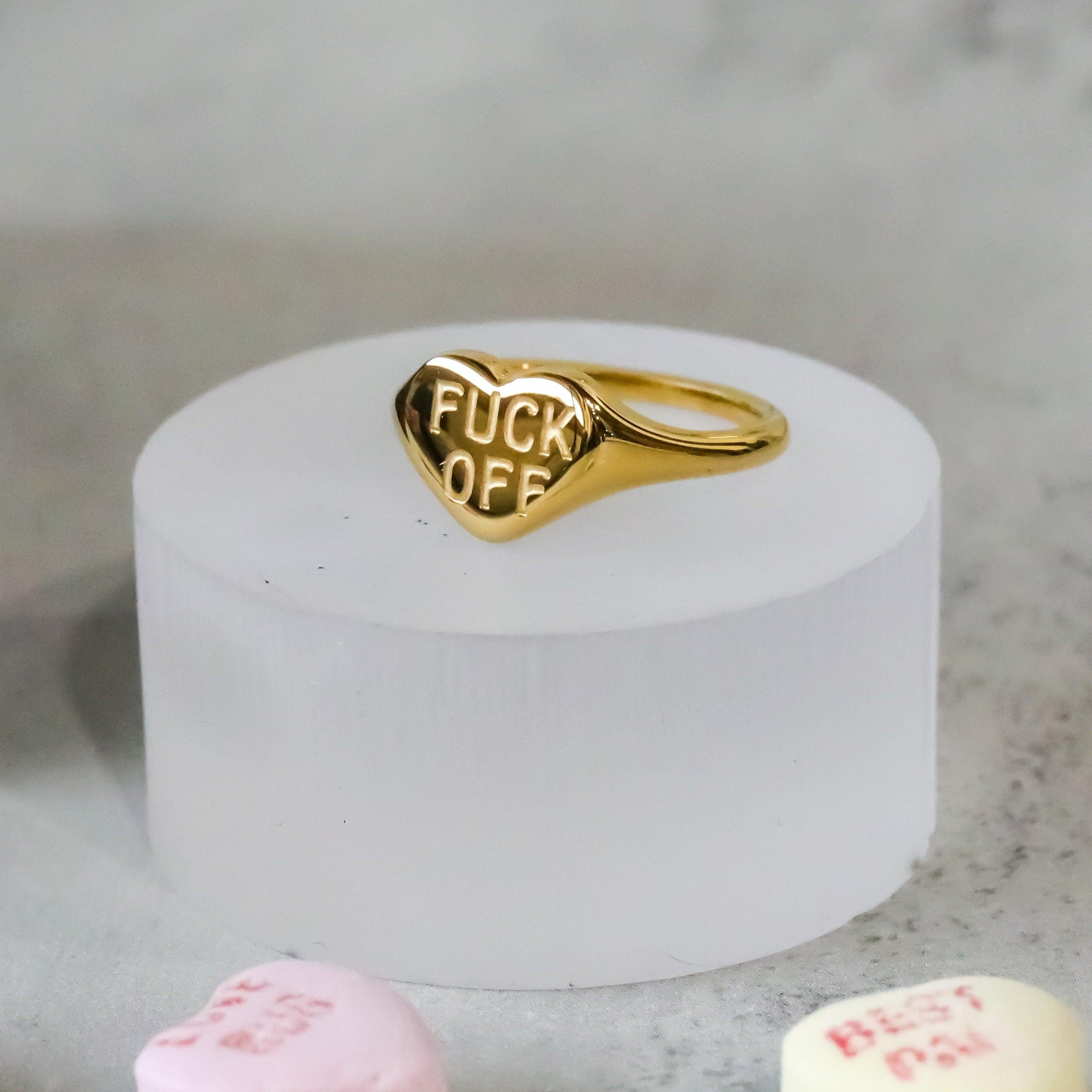 Express yourself with the F*** OFF Heart Ring! This playful accessory serves as a personal mantra, allowing you to subtly express yourself and your unique personality. Wear it with confidence and let it serve as a reminder to stay true to yourself.