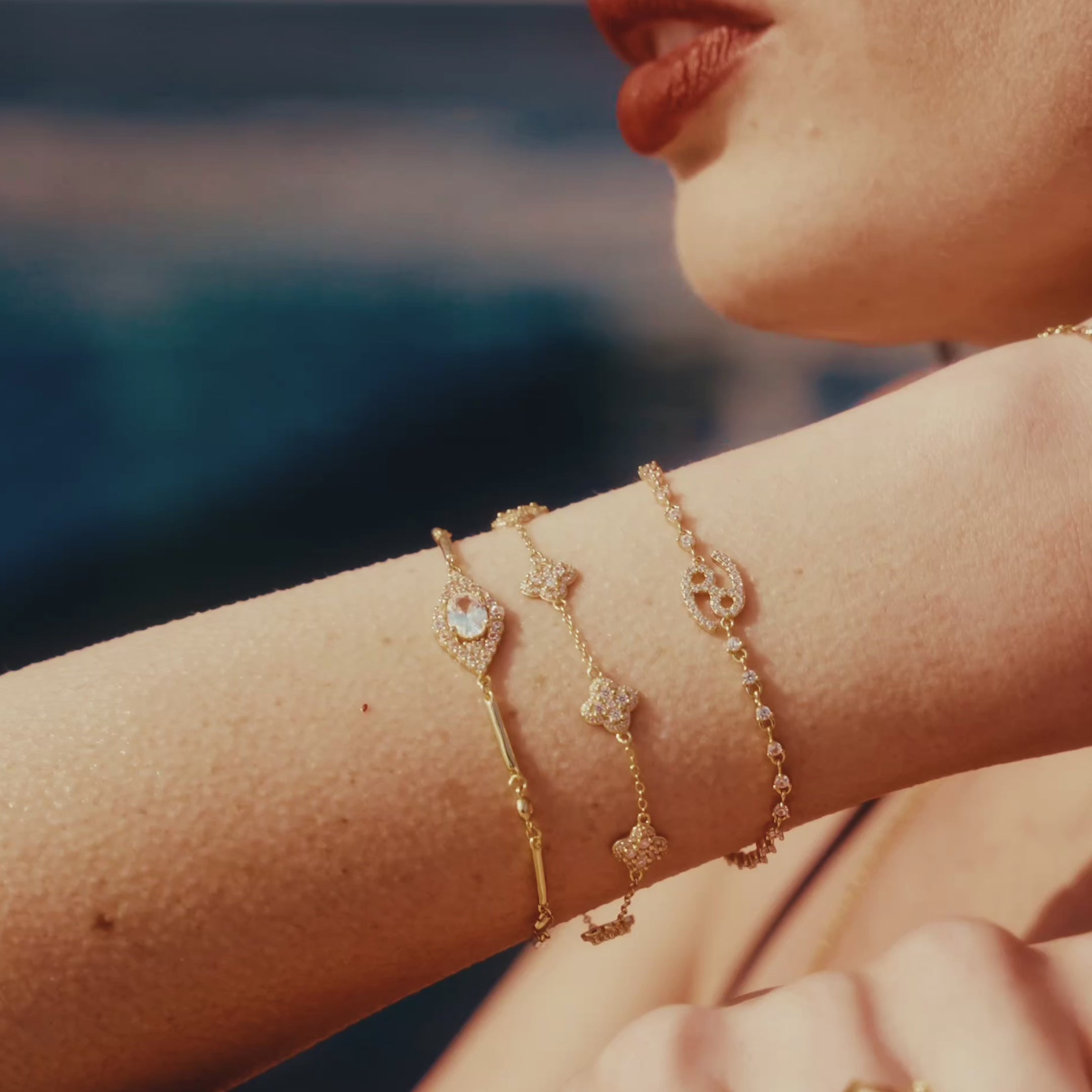 • Chain bracelet detailed with a floral design with moissanite stones.