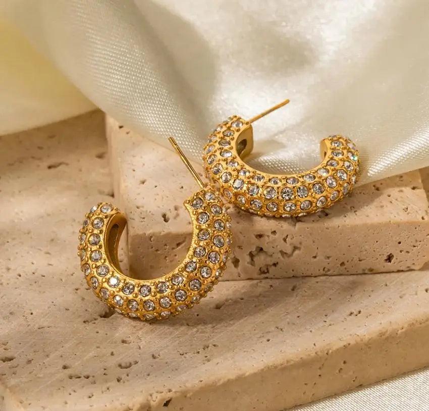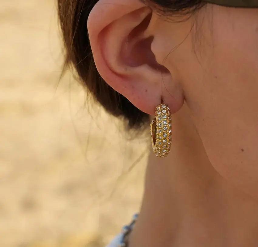 Elevate your elegance with our Large Pave Hoops. These gorgeously crafted pave crystal earrings are adorned with sparkling crystals, adding a touch of glamour to your look. With chunky hoops to frame your face, these hoops are the perfect accessory for any occasion. Add a touch of luxury to your wardrobe and shine bright with our Large Pave Hoops.