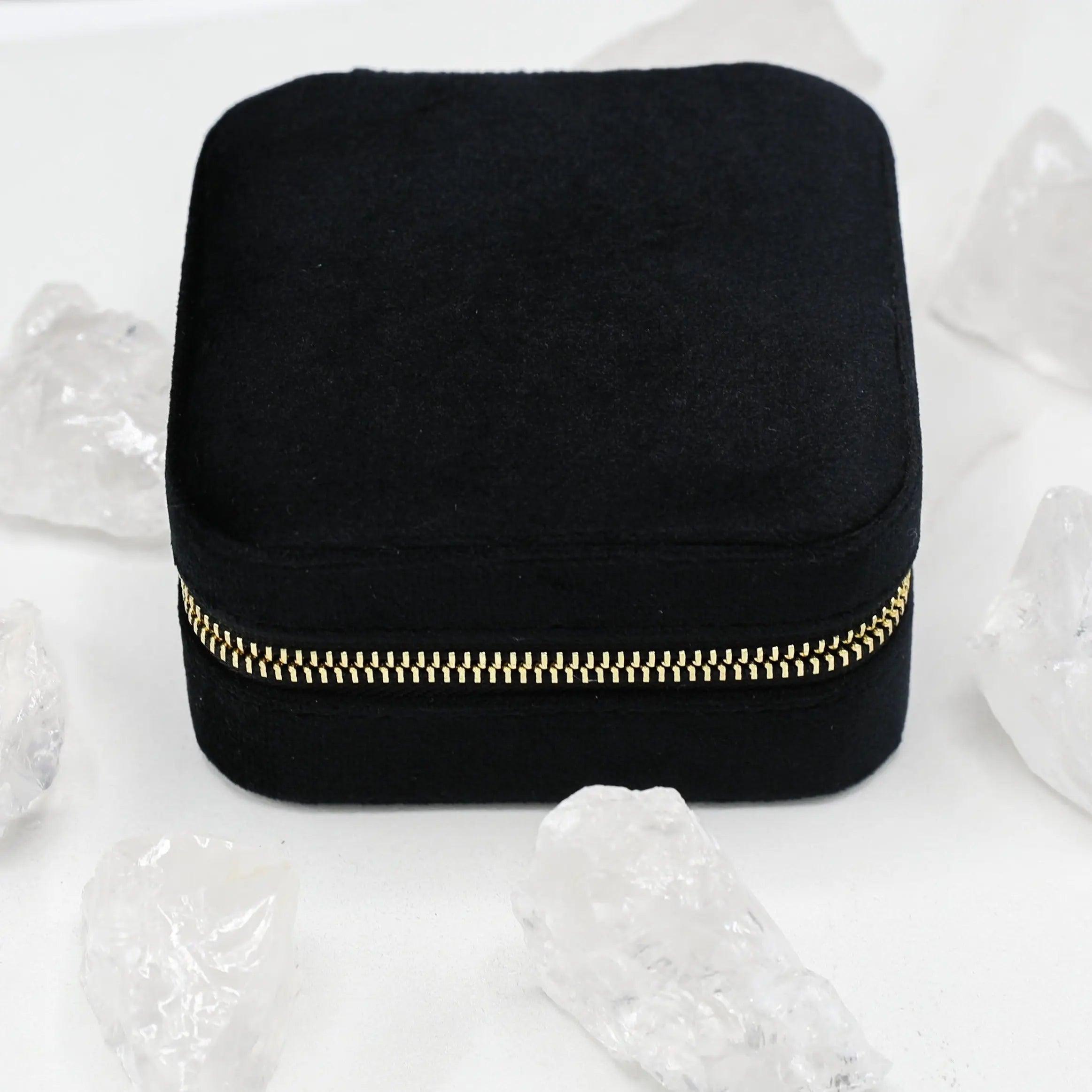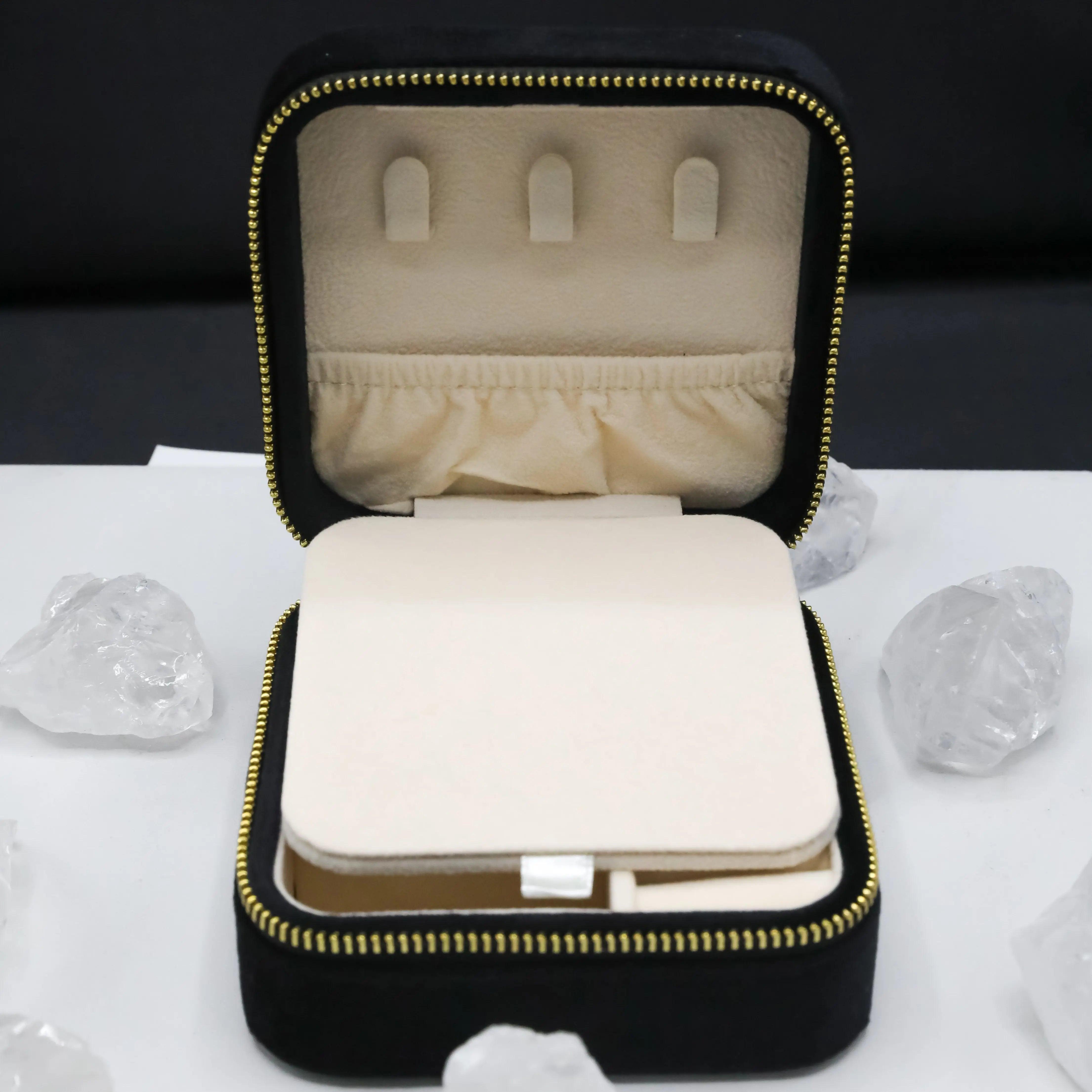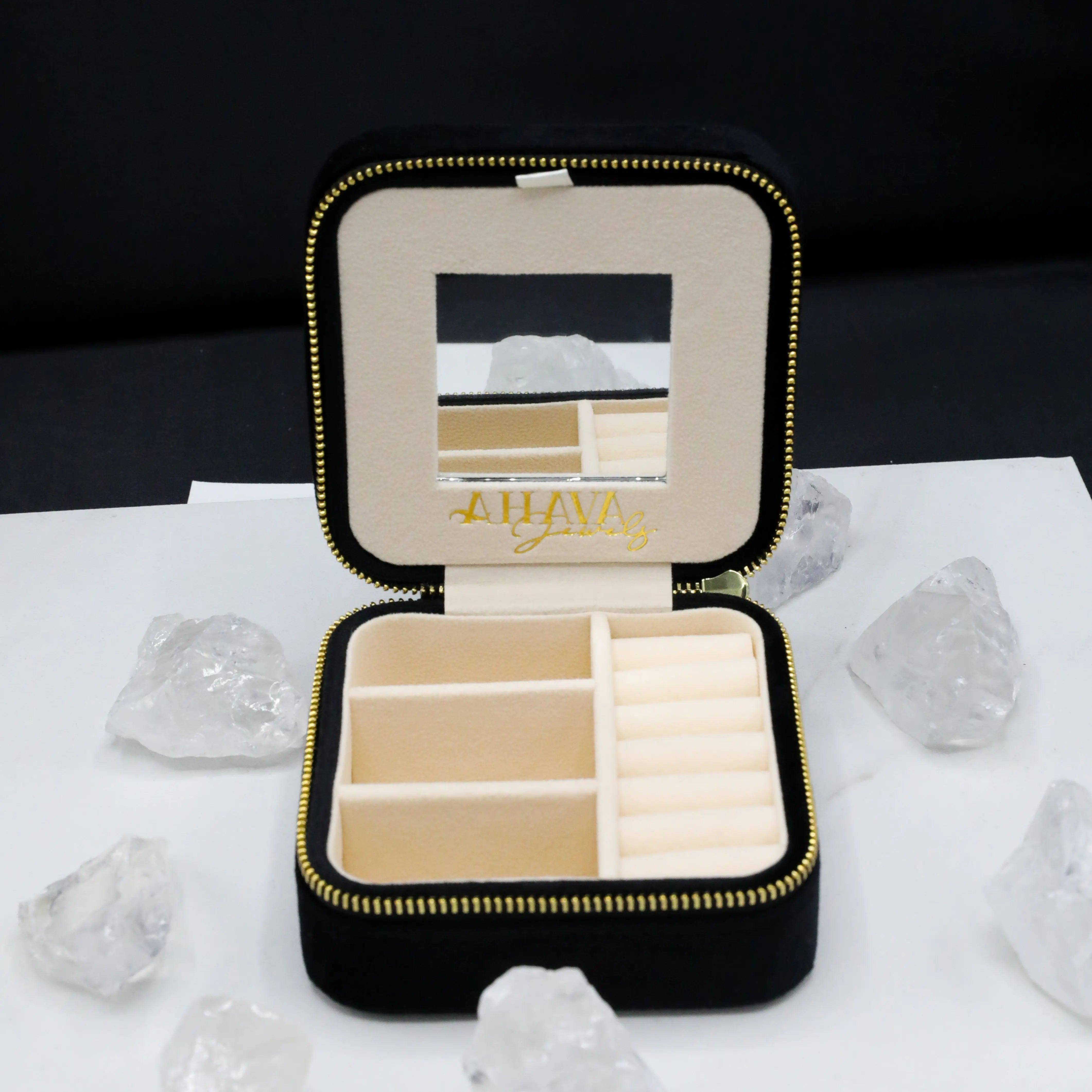 Beautiful and functional, the travel jewelry case is perfect for organizing jewelry at home or away. Thoughtfully designed with cushioned storage for rings, multiple compartments for earrings and necklaces and a mirror for getting ready on the go. Just the right size for a weekend away or when you only want to pack your most-loved pieces, this square zippered case is our most popular gift with soft velvet lining and exterior.