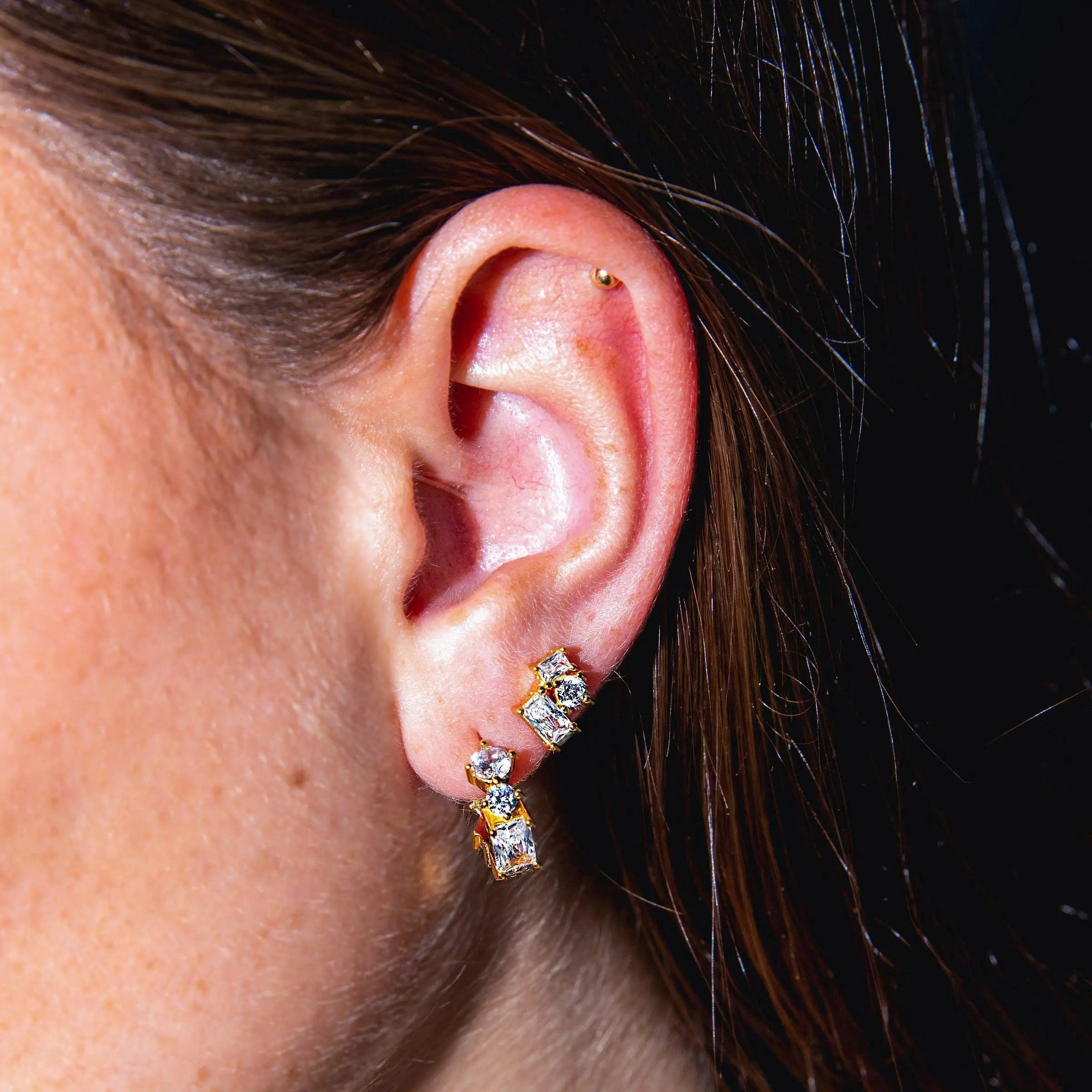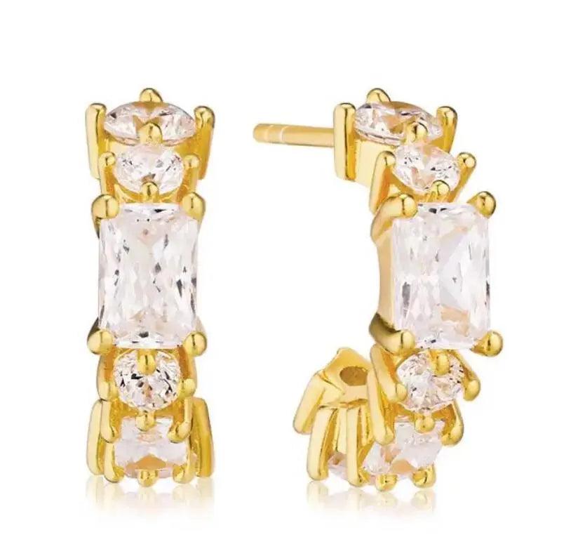 - Pair of Unique Various Shape Crystal C-Shape Hoop Earrings